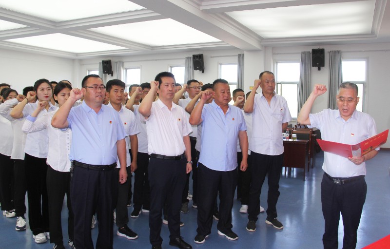 6月30日上午,慶祝活動(dòng)在激昂的國(guó)歌聲中拉開(kāi)了序幕,全體參會(huì)人員肅立,以飽滿的精神狀態(tài)齊唱國(guó)歌?!拔抑驹讣尤胫袊?guó)共產(chǎn)黨,擁護(hù)黨的綱領(lǐng),遵守黨的章程,履行黨員義務(wù)......”全體黨員列隊(duì),面對(duì)鮮艷的黨旗,由新能源公司黨支部書記、董事長(zhǎng)馬有勝同志領(lǐng)誓,重溫入黨誓詞。錚錚誓言代表了每一位黨員忠誠(chéng)奉獻(xiàn)、嚴(yán)于律己。