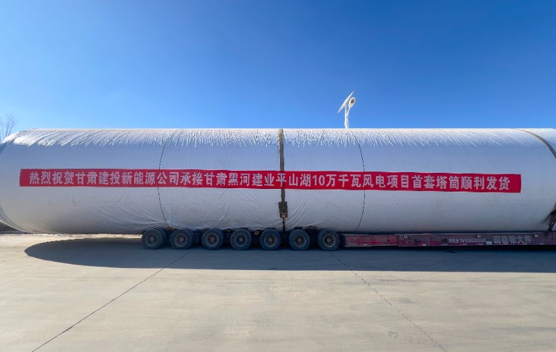 1月16日,由甘肅建投新能源科技股份有限公司承制的甘肅黑河建業(yè)平山湖10萬(wàn)千瓦風(fēng)電項(xiàng)目首套塔筒順利發(fā)貨!