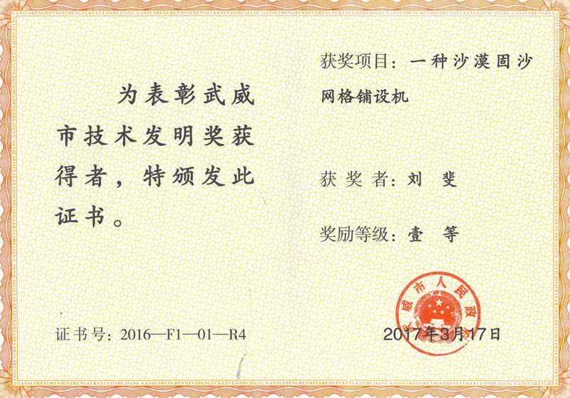 一種沙漠固沙網(wǎng)格鋪設(shè)機-獲獎?wù)撸簞㈧?/span>
