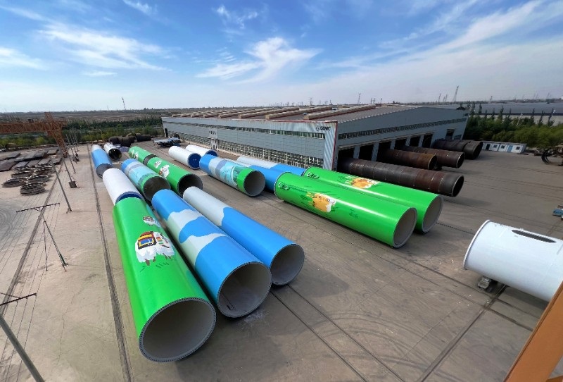 在風(fēng)電塔筒制造領(lǐng)域,公司擁有壓力容器A2資質(zhì)、電力施工總承包貳級(jí)資質(zhì)及承裝(修、試)電力設(shè)施許可證四級(jí)認(rèn)證,為產(chǎn)品研發(fā)與工程實(shí)施奠定了堅(jiān)實(shí)基礎(chǔ)。生產(chǎn)基地總面積達(dá)51,100平方米,涵蓋現(xiàn)代化生產(chǎn)廠房、專(zhuān)用噴涂線(xiàn)及露天材料存放區(qū),并配備46,000平方米的內(nèi)附件制造車(chē)間和50,000平方米的塔筒存放區(qū)域,形成規(guī)模化、集約化的生產(chǎn)布局。通過(guò)采用高強(qiáng)度鋼材及先進(jìn)的焊接、防腐工藝,公司確保塔筒產(chǎn)品在極端風(fēng)場(chǎng)環(huán)境下的結(jié)構(gòu)穩(wěn)定性和長(zhǎng)周期耐久性,可適配1.5MW至7.0MW不同功率機(jī)組需求。截至目前,公司已累計(jì)完成60余個(gè)風(fēng)電項(xiàng)目,交付塔筒超1,100套,覆蓋國(guó)內(nèi)多樣化風(fēng)場(chǎng)場(chǎng)景,并與金風(fēng)科技、明陽(yáng)智能、華潤(rùn)電力等頭部企業(yè)建立了長(zhǎng)期戰(zhàn)略合作,市場(chǎng)份額持續(xù)擴(kuò)大。