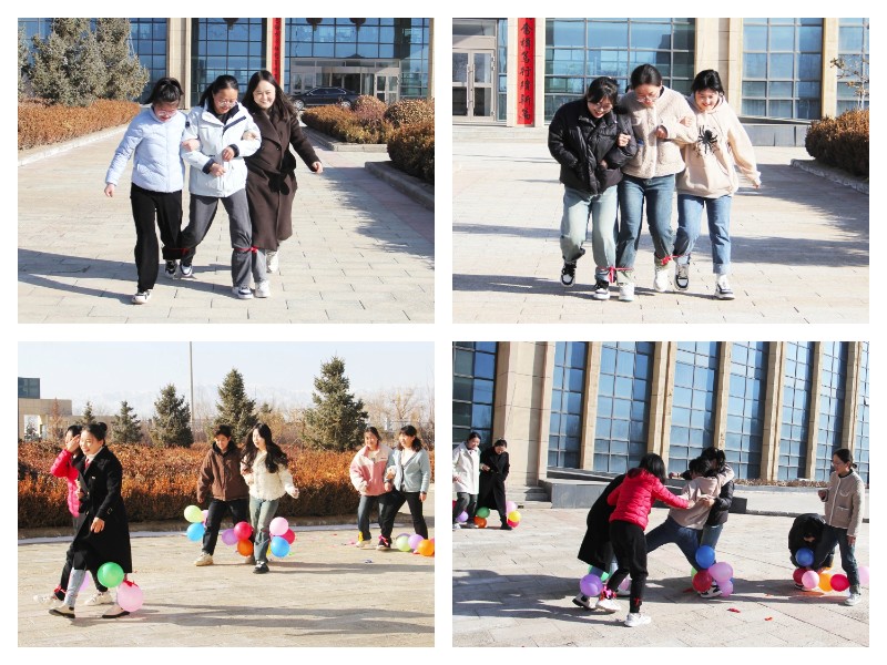 本次活動還設(shè)置了四人三足、踩氣球等趣味游戲,看似簡單的游戲,卻考驗著大家的體力、腦力、眼力、平衡力?;顒娱_始,主持人宣布完比賽規(guī)則后,參賽者們便迫不及待地開始了分組練習和比賽,她們鉚足勁頭、默契配合、齊心協(xié)力、奮勇爭先,整個活動現(xiàn)場趣味橫生、熱鬧非凡。